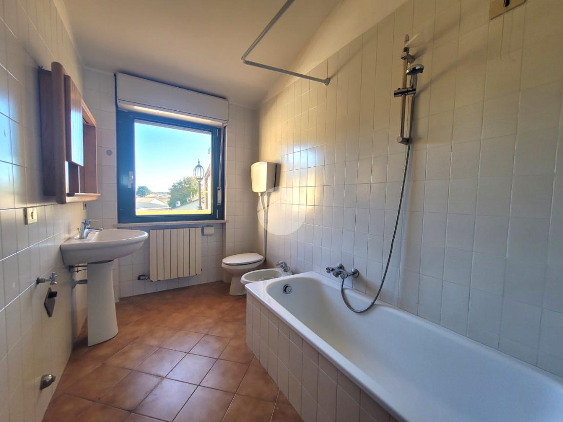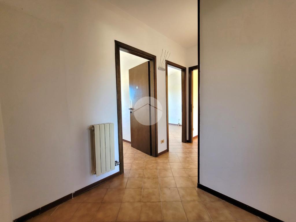 Un disimpegno spazioso, dove si può ricavare lo spazio per un ulteriore armadio, conduce al bagno finestrato dell'abitazione.