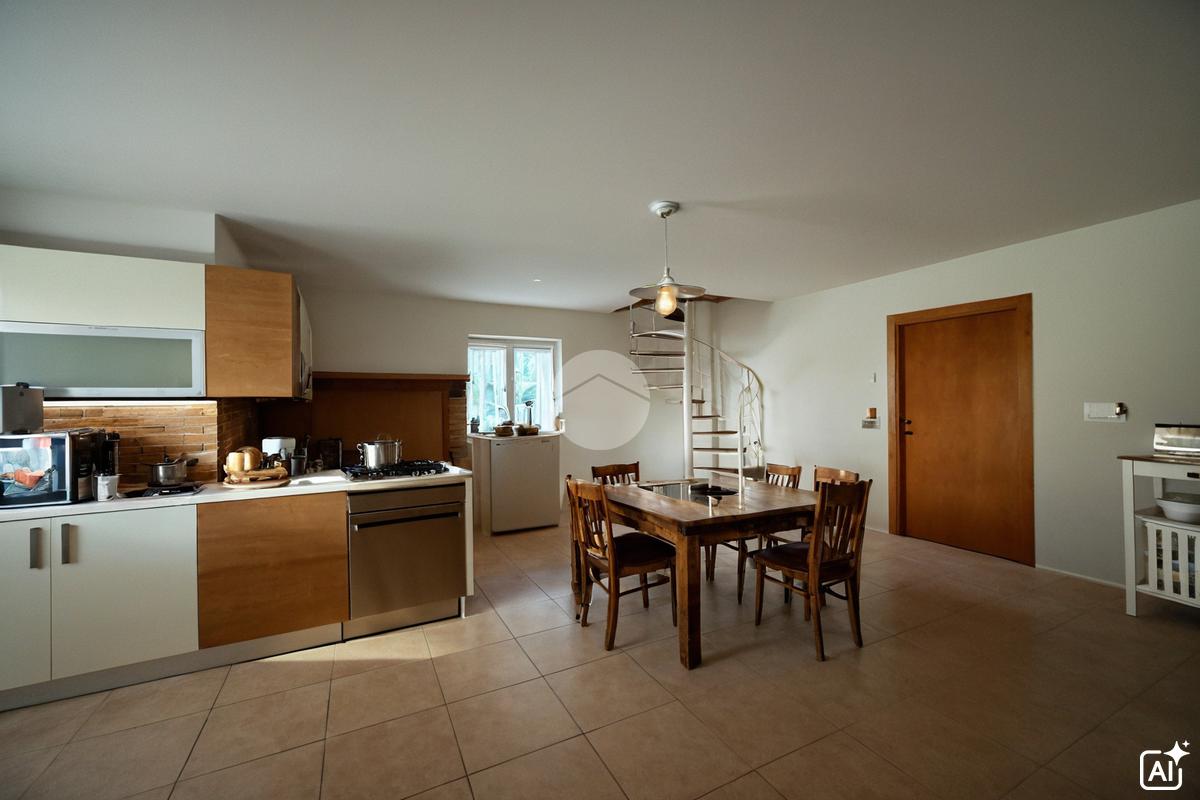 Al piano primo si sviluppa l'abitazione pincipale suddivisa in soggiorno, cucina con sala da pranzo, tre camere da letto, ripostiglio e bagno. I piani sono collegati tramite una scala interna ed i locali si distinguono per le ampie metrature.